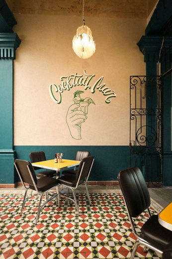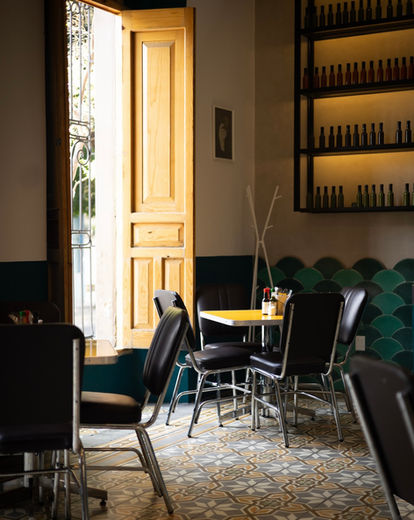 Otra consideración importante que vale la pena mencionar es el hecho de conservar el mobiliario original en la habitación del salón privado como parte de la esencia del mismo. Y como toque final de la intervención se realizan propuestas gráficas para vestir muros de acento en colaboración con un rotulista y creativo profesional de rótulos pintados a mano.