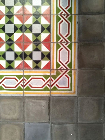 Pavimentos: conservación de los mosaicos hidráulicos originales; sustitución puntual en áreas de servicio de barra y sanitarios con pisos contemporáneos antideslizantes por razones normativas.