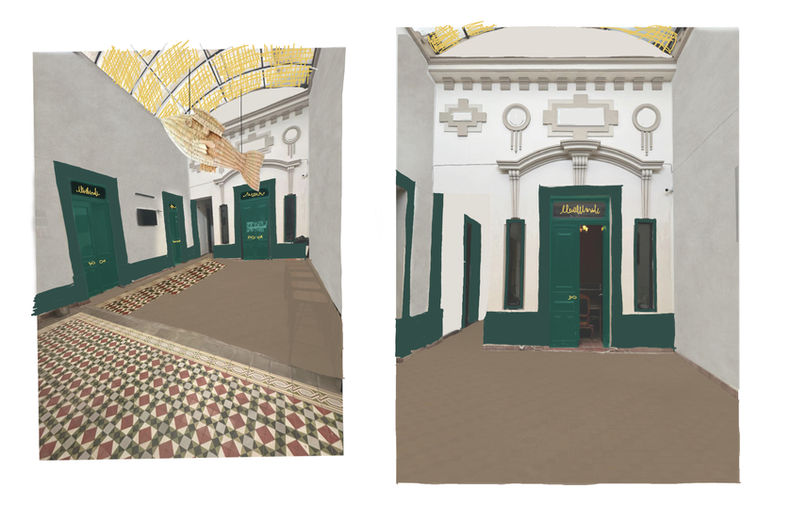 Dentro de la intervención se consideran como parte del proyecto las áreas destinadas a zaguán/ sala de espera, la salas no. 1, no.2, el salón privado y los sanitarios; respetando la configuración espacial y los valores arquitectónicos. En las cuales se trabaja siguiendo los mismos principios de intervención llevando a cabo labores de obra destacando principalmente el patio central, para convertirse en el centro vital de la intervención disponiendo la Barra de Bar en dicho espacio destacando la belleza de las habitaciones que lo circundan a través de la aplicación de color en detalles arquitectónicos relevantes que realcen el valor artístico del manufacturado. Realizando intervenciones de adaptación funcional, conservación de acabados históricos e incorporación de elementos contemporáneos claramente diferenciados.